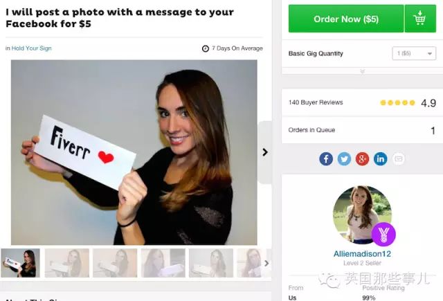 【給我5美元,我可以拍一張拿著字條的照片發在你的FB主頁上噢】